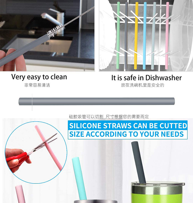 批發(fā)價格環(huán)保 100% 食品級五顏六色 BPA 免費酒吧飲用可重復(fù)使用的食品級硅膠吸管