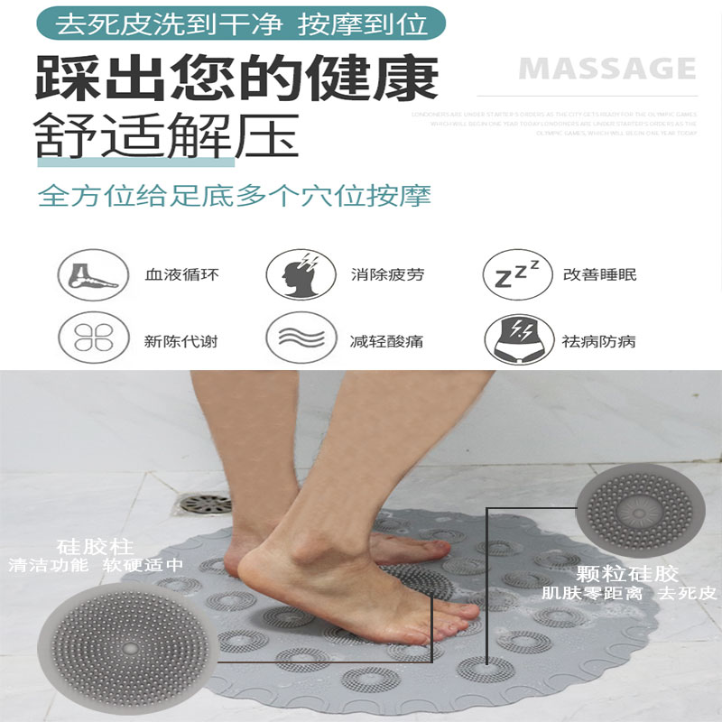 加長版圓形淋浴墊浴室防滑墊洗澡按摩腳地墊家用衛生間硅膠防摔墊