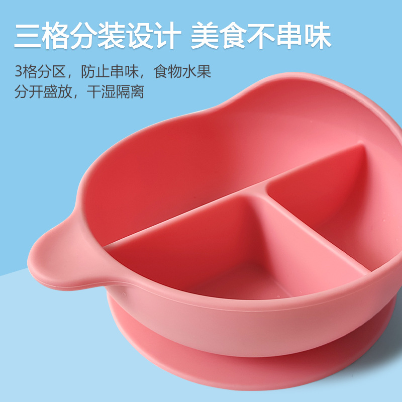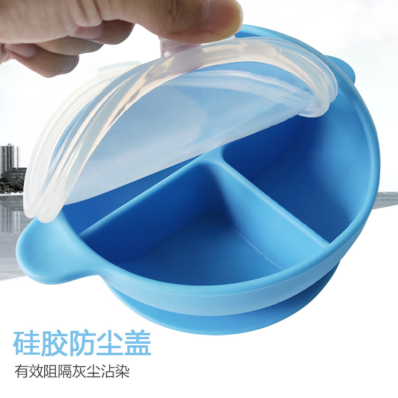 大號帶蓋硅膠吸盤碗 嬰幼兒寶寶帶蓋輔食碗餐盤 分格餐盤餐具套裝
